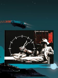 Sur l'objet, pas grand chose à dire. Le format à l'italienne fonctionne bien, même s'il n'est pas indispensable et surtout hérité d'une publication web, donc format paysage pour être apprécié sur des écrans 16/9 plutôt que portrait comme les comics classiques. Delcourt pour cet album a fait les choses en grand, proposant un bel objet, soigné. Avec une couverture classique mais efficace, avec un Ryker qui se détache sur un fond uni et une voiture lancée à vive allure en arrière plan. Elle fait plus penser à un récit avec des voitures de courses, un Fast and Furious qu'à un thriller sci-fi qui flirte avec H.G. Wells.